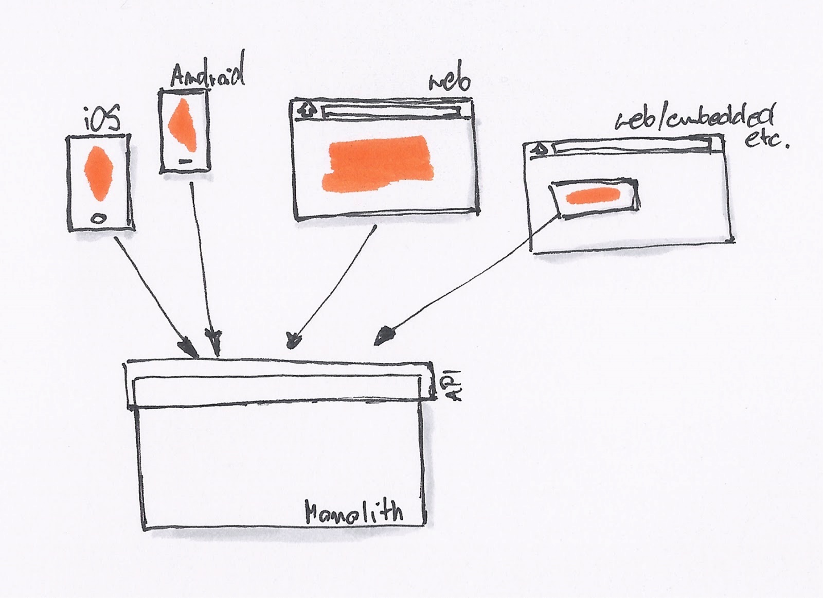 对于一个创业公司而言,在业务初期的时候最开始可能只是一个简单的Web应用,从一个小体量的单体应用开始可能并不会有太多问题。但是当业务开始快速发展开始,一切就变得不同了。因为你可能会出iOS/Android App,甚至会有嵌入式终端设备。